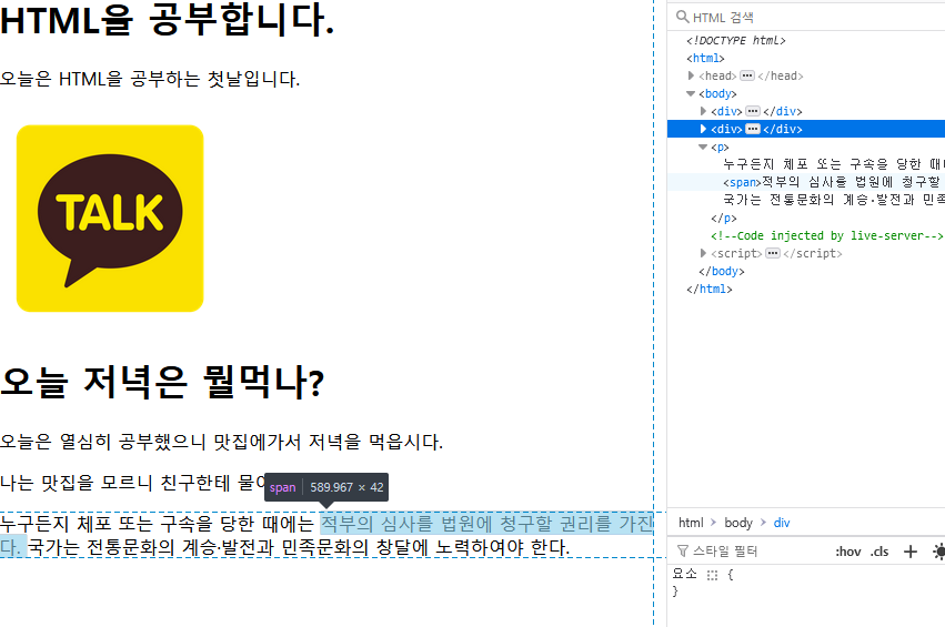 <p>오늘은 HTML을 공부하는 첫날입니다.</p>