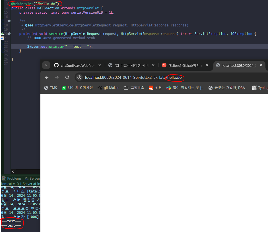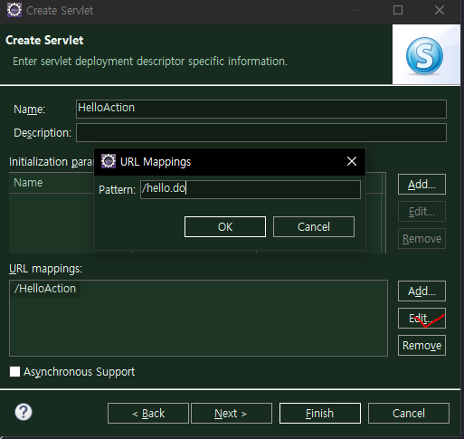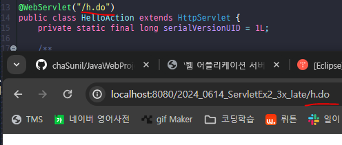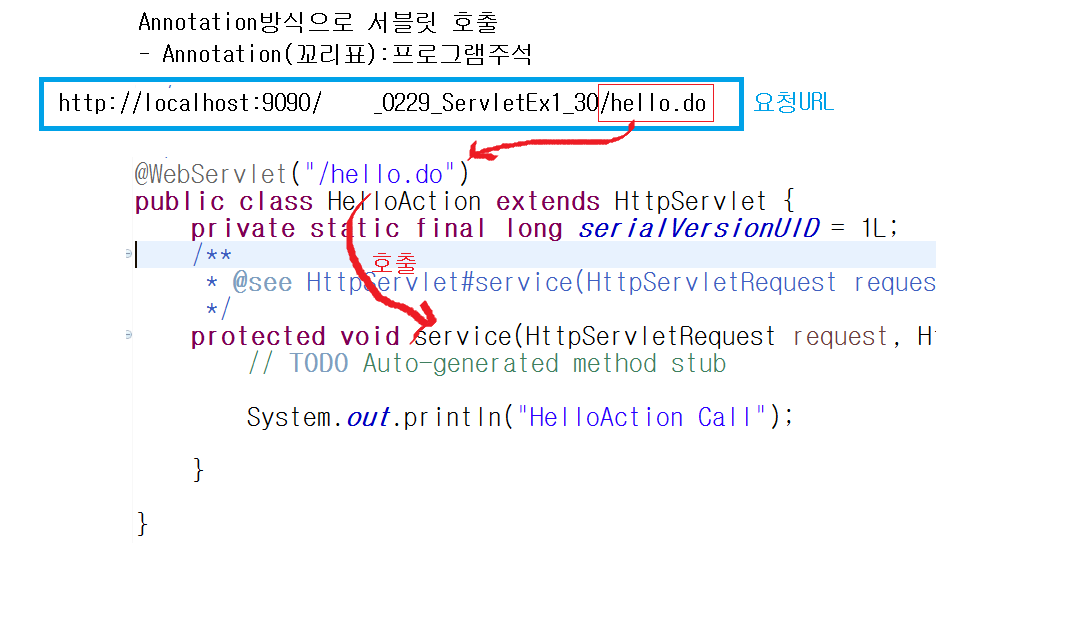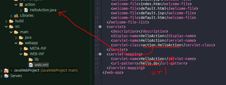 - HelloAction이라는 Sevrlet 파일을 만들었고, /hello.do를 url로 호출하면, 저 경로가 실행이 되는것이다.