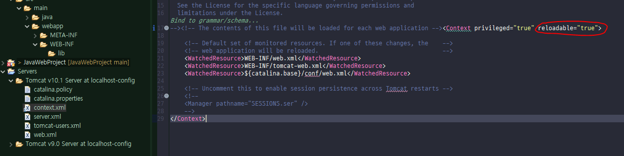 - Servlet의 환경설정 파일이 여기에 저장된다.
